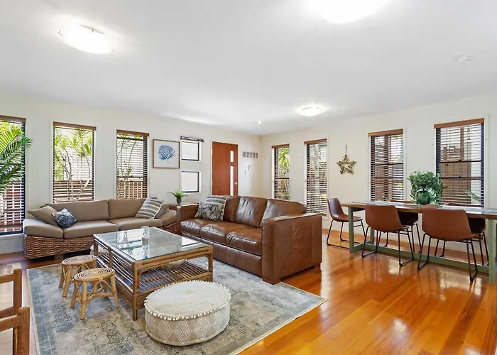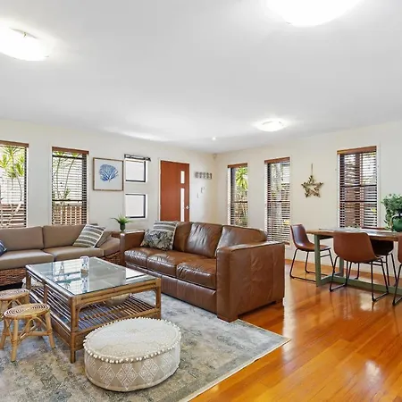 Located approximately 25 minutes' walk from the Sunshine Coast Aqua Fun Park, the 2-bedroom Little Whale House Villa Mudjimba offers a terrace with views of the garden. Featuring inner courtyard views, this accommodation invites guests to visit Cotton Tree Beach, located 4.2 km away.